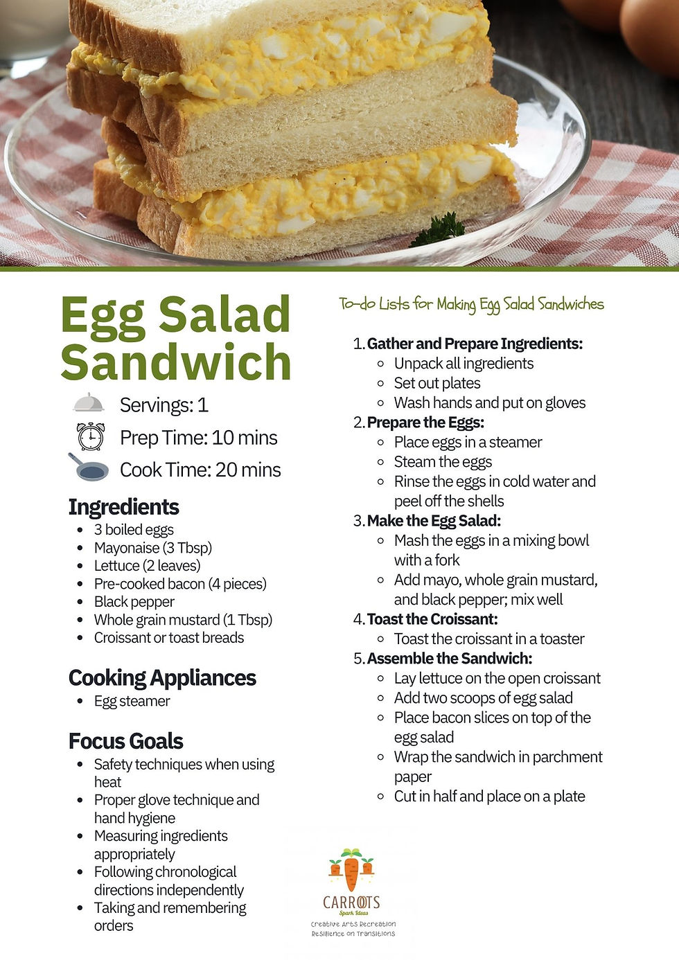 Innovative Egg Salad Sandwich Recipe from CARROTS Adaptive Cooking Class